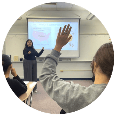 We deliver prevention education to thousands of middle and high school students in the DuPage County area throughout the school year. Health Educators partner with Peer Educators, who share their personal experiences of being a young parent.