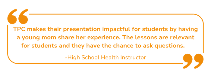 Teen Parent Connection’s Prevention Programs promote optimal reproductive health for adolescents in DuPage County by fostering responsible decision-making skills, encouraging healthy sexual attitudes and behaviors, and providing reproductive health education that is comprehensive, medically accurate, and evidence-based.